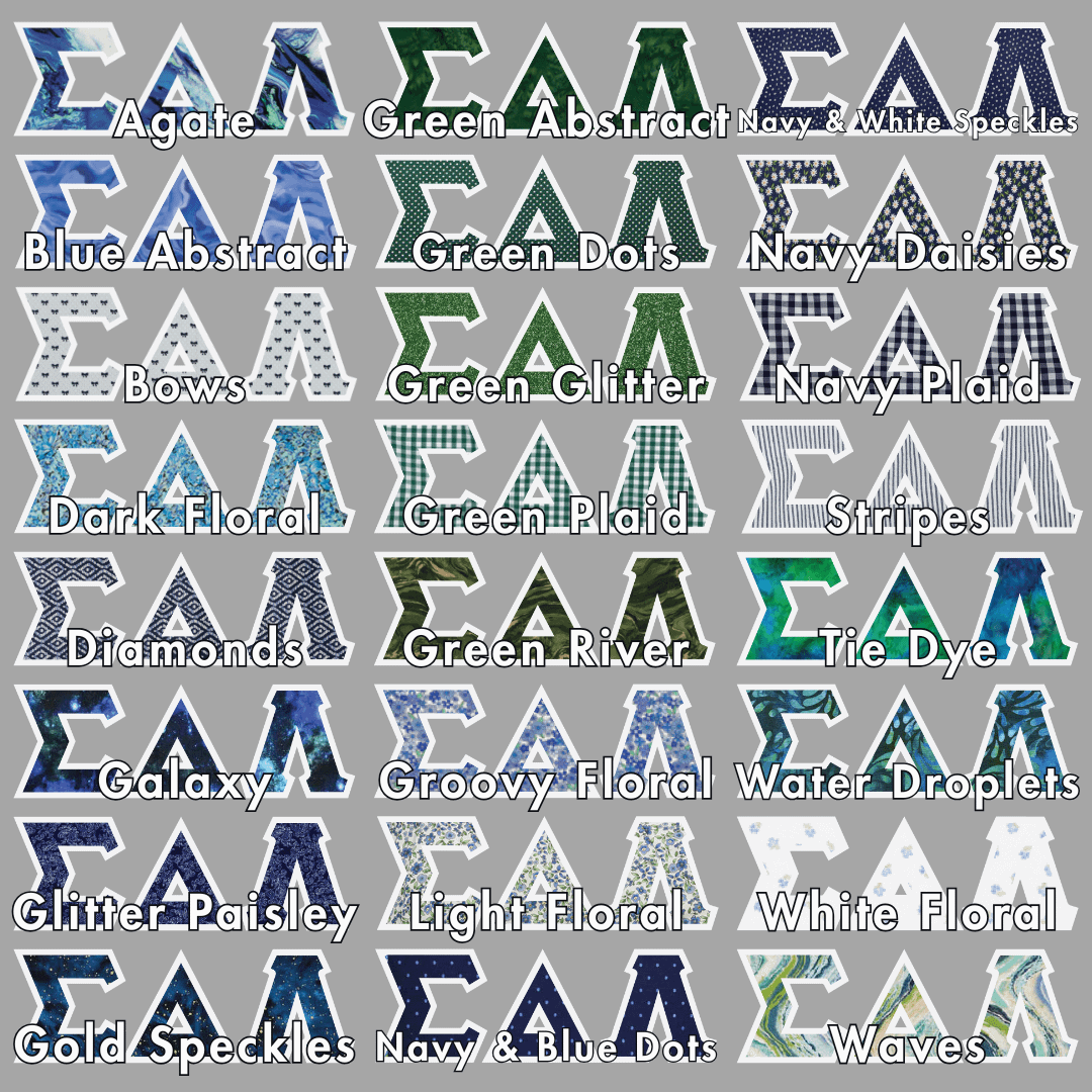 Our large tote bags make a statement while providing a generous carrying capacity of almost 1650 cubic inches. Measuring 22″ x 15″ x 5″, this 100% cotton gusseted tote also features a zipper closure and an interior zippered pocket. We embroider the same Greek stitch letters from our classic shirts onto the tote in the same large, 4.5″ size. Pick one of our custom SDL-inspired fabrics to create a tote bag that embodies your pride!